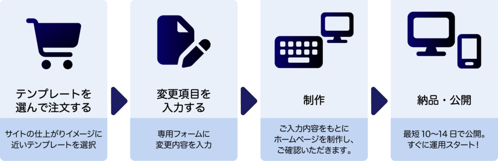 テンプレート制作だからコストを抑え、最短10〜14日で公開できます。